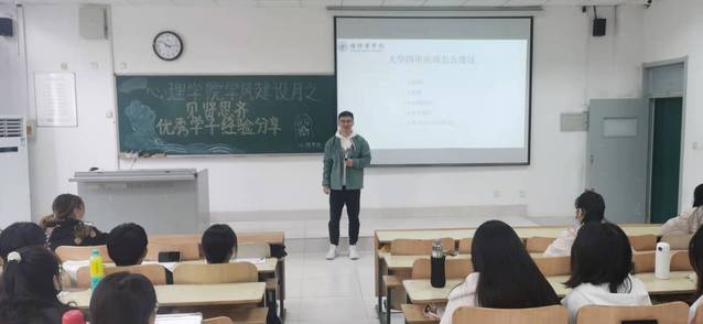 10月18日上午,心理学院在B202教室举办学风建设月之优秀学子经验分享活动,本次活动由心理学院专业教师牟忠琛博士主讲,2020级同学积极参加。