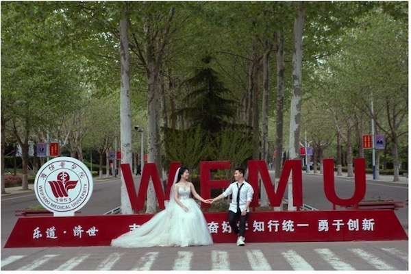 10月16日,校友高尚昆、于晴回校参加纪念大会。高尚昆和于晴分别是学院2014级眼视光班的班长和团支书,在共同处理班级工作的过程中培养了感情,并逐渐走到了一起;今年4月,两人回校在相识相恋的地方拍摄婚纱照,让母校见证两人的甜美生活;10月15日,两人步入婚礼殿堂。