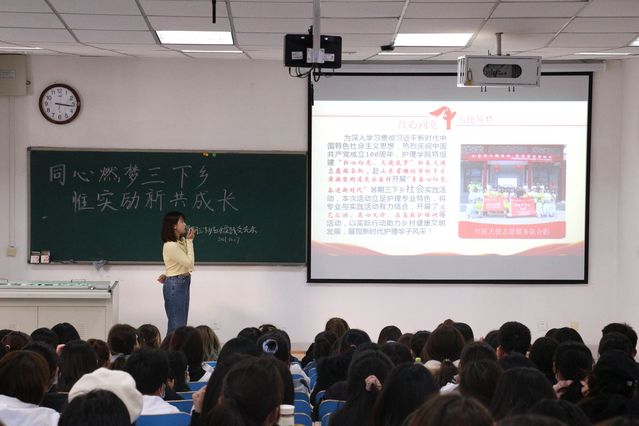 10月17日下午,护理学院于浮烟山校区教学楼A308室举办以“同心燃梦三下乡,惟实励新共成长”为主题的2021年暑期“三下乡”社会实践活动交流会,志愿者代表以及护理学院2021级全体在校生积极参加。