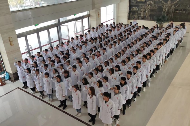 庄严肃穆的誓言墙下,一身身白衣承载着生命的责任,新一批医学生高举右拳,慷慨洪亮的宣誓,时刻提醒着同学们:医者,医病医心;医者,为国为民;医者,不忘初心,为医者必定竭尽全力为守护人类的身心健康而奋斗终生。