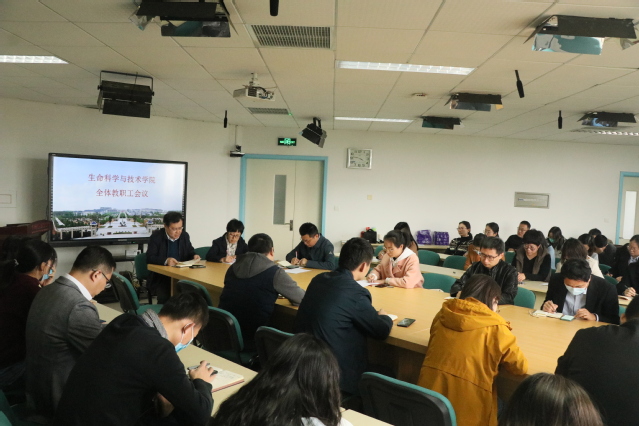 10月29日下午,生命科学与技术学院召开全体职工大会,传达学习落实学校安全工作会议精神,布置学院安全工作。学院全体班子成员、全体教研室、实验室主任、全体教师参加会议。