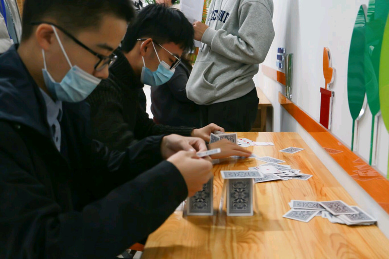 活动分四个项目进行,各参赛队伍在工作人员的组织下依序进行了比赛。一是“飞机快飞”,同学们制作出各式各样的纸飞机,在技巧与力量巧妙的配合下,想方设法使飞机飞的更远。二是“小船快跑”,同学们各展身手,使纸船在不施加外力的条件下在水面上前行。三是“叠纸牌”,同学们通过优化结构设计,在有限的时间内把纸牌搭建得最高且牢固。四是“谁的小钢珠多”,在平衡与重量的双重考验下,同学们以创新的思维制作出了形式各样的纸质承重模型,使得模型在规定时间内承载最多的钢珠。