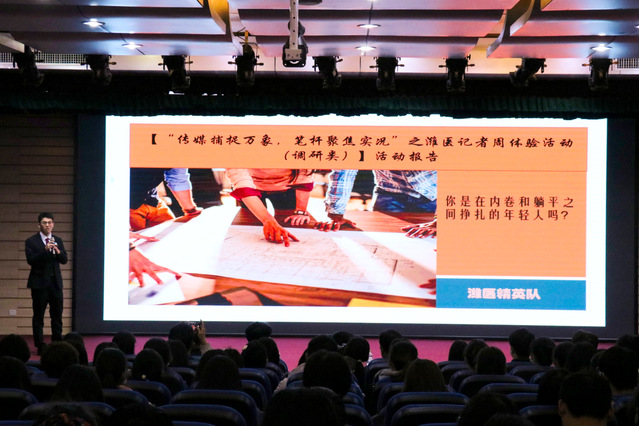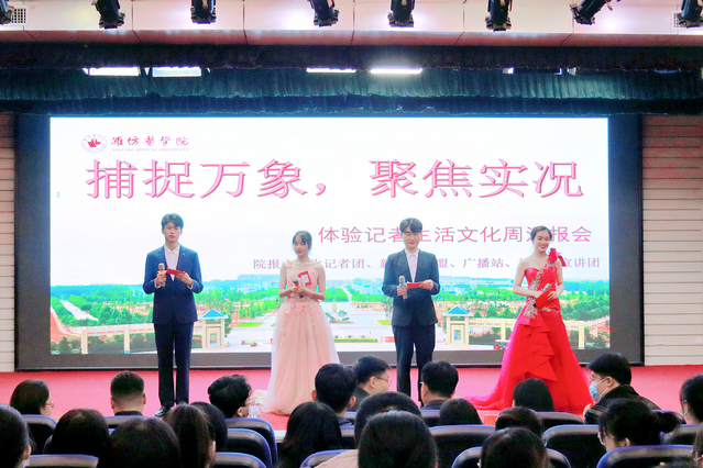 11月13日晚,由院报大学生记者团、新媒体联盟、广播站、校史馆宣讲团联合举办的“捕捉万象 聚焦实况”校园学生记者体验活动展演暨优秀学生记者表彰会在图书馆演播厅举行。