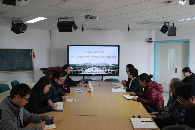 11月25日上午,生命科学与技术学院在11442会议室召开2021-2022学年第一学期教学督导反馈会。学校教育教学质量督导评估专家委员会刘成志教授、王凤斌教授进行了教学督导反馈。生命科学与技术学院党总支书记张伟、院长高志芹、副书记于文静,学院各教研室主任参加会议。