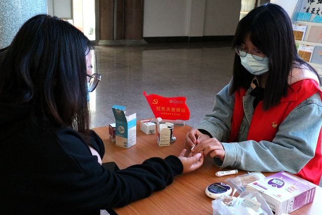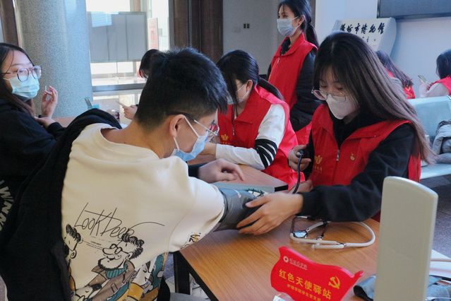 义诊现场,党员们运用专业知识,积极地为工作人员及参观人员量血压、测血糖并提供健康咨询服务,耐心细致地向大家传输防胜于治的健康理念,切实增强疾病预防意识。义诊结束后,为参观人员详细讲解文物知识,协助向导指引方向,为人民群众提供了内容丰富且形式多样的服务。在此次活动中学生党员熟练的操作技术与耐心良好的服务态度获得了现场群众的一致好评。