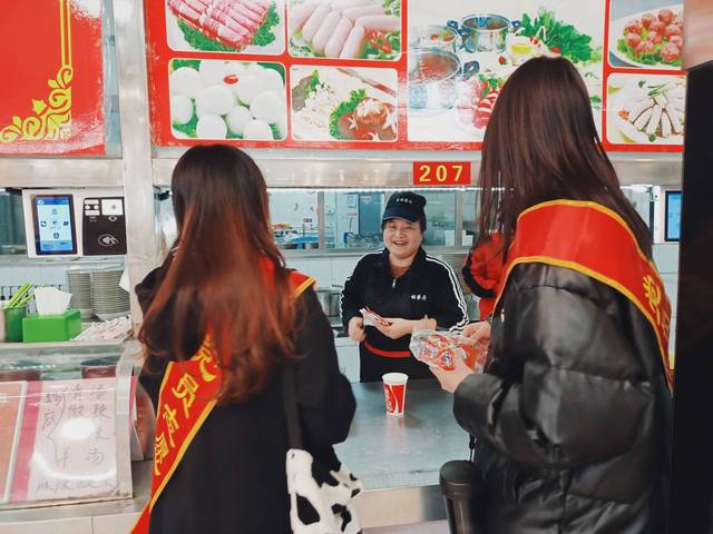 本次主题党日活动分为四个篇章。“微笑驻心田”——支部党员为食堂工作人员送上了暖贴,为他们献上了一份暖暖的爱心,工作人员以微笑回应,彼此都能感受到暖暖的潍医情;“爱意传递暖冬风”——支部党员前往校园各处为环卫工人送上热水,献上对他们在严冬时分仍坚守岗位、不畏寒冷、守护校园美丽的敬意;“迷茫我导航,忧烦一扫光”——支部成员深入学生群体之中,普及入党程序、如何做一名合格党员等党务基础知识;“手拉手,心连心,共建良好学习环境”——支部党员帮助新生打扫教室,充分发挥了先锋模范作用,在为他人服务的同时增强了党支部的向心力和凝聚力。