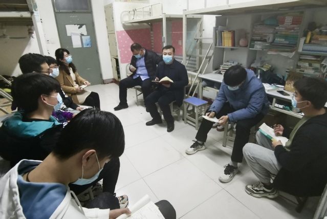 药学院党总支书记李洪先从疫情防控、研究生复试、就业求职三个方面,叮嘱学生做好疫情防控,严守学校和实习单位的各项规章制度,从自身做起,共克时艰;做好复试全方位准备,夯实基础;要坚持努力,不断奋进,做新时代的追梦人。党总支副书记王垚建议同学们做好心理调适,正确应对考研和就业,做好简历制作等基础性工作。青年博士、班主任马金龙就研究生复试面试准备、调剂学校的选择等学生关注的问题进行详细讲解。辅导员结合当前疫情防控形势,详细讲解学校疫情防控纪律要求,对于同学们关心的生活、学习问题进行一一解答。