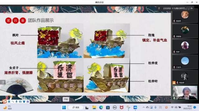 “剖破草藩向未来”竞赛活动分初赛、复赛、决赛三个环节。通过笔试初赛,共有20支队伍进入复赛。复赛经过现场植物标本的名称科属辨认、药用部位和药用价值答辩,有6支队伍进入决赛。决赛环节各参赛队伍围绕“理气”“理血”“补益”“温热”等中药特性展开,通过寻找身边常见的中草药,讲述一味草药的前世和今生,并与精心绘制的标本相呼应,捻草成金展神采。 经过激烈角逐,药学院“十九畏”队获得一等奖、药学院“悠悠草香队”和“西海岸代表”队获得二等奖,麻醉学院“三颗针”队、临床医学院“尘歌壶”队、公共卫生学院“小葵花向阳队”获得三等奖。