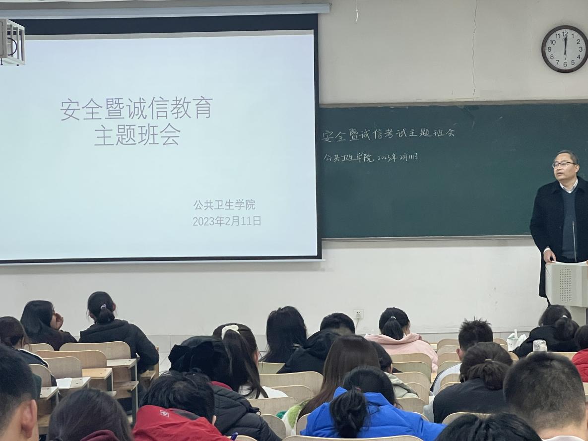 新学期,为提升学生安全意识、筑牢诚信根基,公共卫生学院预防医学专业于2月11日通过线上线下相结合的方式,召开“安全暨诚信教育”主题班会,预防医学专业辅导员、全体在校学生参加。