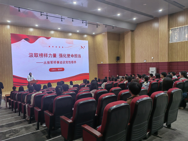 董惠平结合具体事例,从体现了“人民至上、生命至上”的根本立场,展现了“勇于担当、主动作为”的党员风采,践行了“无私奉献、服务社会”的崇高品格三个方面讲述了张军桥事迹中的共产党员本色。她号召大家对标反思党性要求,学以致用践行使命,在学术科研中融入人民情怀,在专业实践中锤炼党性修养,在日常言行中发挥模范作用:一要筑牢“政治灵魂”,坚定理想信念,树立“科研报国”理念,把个人追求融入国家与人民的需要;二要锤炼“专业本领”,提升服务能力,善于把专业知识转化为解决实际问题的有效手段;三要强化“担当精神”,面对科研难题,主动攻坚;四要永葆“清廉本色”,严守纪律规矩,树立正确的世界观、人生观、价值观,做到诚信科研、守护学术净土。