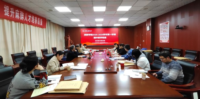 10月22日,麻醉学院开展2025-2026学年秋季学期期中教学检查学院自查,学校教育教学质量督导评估专家委员会专家胡温庭教授、隽兆东教授,学院二级教学督导专家,各教研室主任、教学秘书及授课教师参加,活动由副院长孙丽娜主持。