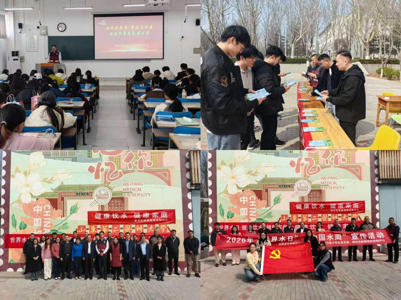 为进一步加强公众饮用水安全意识,提高公众饮用水健康素养水平,3月23日上午,公共卫生学院联合潍坊市疾控中心举办主题为“健康饮水,健康家庭”的“世界水日”宣传活动。公共卫生学院党委书记郑文贵、院长王春平参加活动。