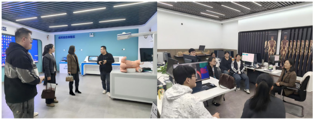 座谈交流会上,楚新艳介绍了智能医学工程专业人才培养情况以及毕业生整体优势,企业负责人讲解了企业的发展历程、核心技术研发、运营模式、岗位需求等。学院领导、师生代表观摩了企业研发产品,双方就行业人才需求、岗位供给及校企合作模式进行了深入交流。