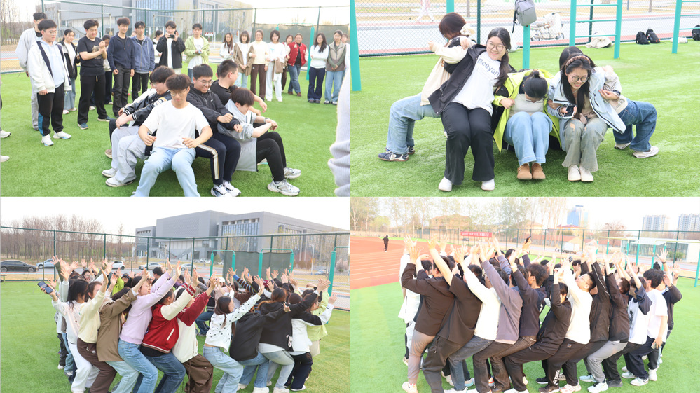活动设置三个环节,“破冰行动”中,有效降低同学们紧张情绪,提升心理适应能力;“坐地起身”通过身体协作与共同目标的达成,促进成员间的情感联结与心理成长,参与者背对背围坐、手臂相挽,在不借助手撑地的情况下同时站立,所有成员同步发力、协调动作,成员依赖彼此支撑,打破人际隔阂,增强信任感,在成员“再坚持一下”,在多次失败后仍不放弃,锻炼抗挫能力和集体坚持力;“信任圈——人椅”通过团队中的同学同步动作、保持平衡,任何个体的懈怠都会影响整体完成度,凸显“个人对团队的重要性”,活动缓解紧张情绪,缓解学习压力,维持姿势时持续集中注意力和坚持,培养心理韧性,身体动作依赖快速打破心理防线,建立真实信任感, 增强对团体的认同感和责任意识。